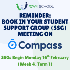 SSG bookings are now available on Compass. Please log in to Compass and choose a time slot to book a meeting with your students’ teacher.